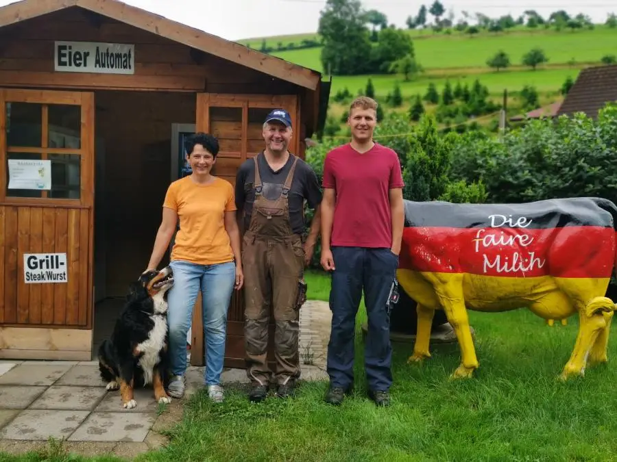 Der Grundstein am Lunzenhof der Familie Schwendemann in Oberharmersbach im Schwarzwald zeigt das Jahr 1755 an. Solange existiert dort schon die Landwirtschaft. Zur Zeit leben 3 Generationen gemeinsam auf der Hofstelle. Die 48 Milchkühe haben von April bis Oktober Weidegang und leben ansonsten in einem geräumigen Boxenlaufstall mit der Möglichkeit zum ganzjährigen Freilauf. Alle sieben Stunden dürfen sie in den Melkroboter eintreten, wo sie gemolken werden. Da es auch immer ein Leckerlie im Roboter gibt, versuchen es die meisten Kühe allerdings gerne öfter. Die Milch trägt das Tierschutzlabel für ein verbessertes Tierwohl. Auf 33 Hektar Grünland und 1,5 Hektar Ackerland bauen die Schwendemanns das Futter für ihre Tiere selber an.